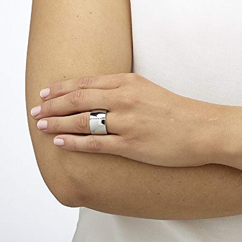 Classico anello da donna in argento lucidato: sobrio anello in acciaio inossidabile satinato, ornato con scintillanti zirconi Swarovski con taglio a brillante.