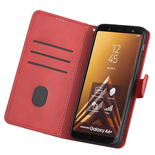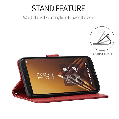 HEIGOU - Custodia a portafoglio per Samsung Galaxy A8 2018, in pelle PU, con scomparti per carte di credito e chiusura magnetica, colore: Rosso scuro