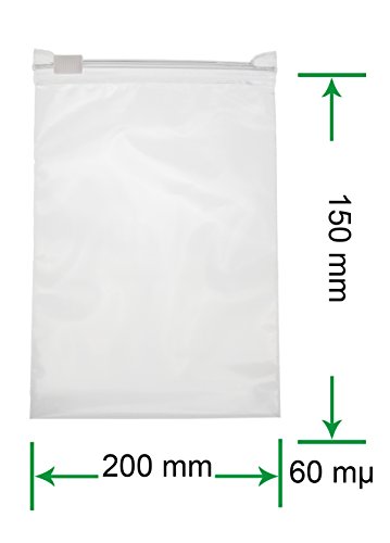 HeiGroup - HeiZip 100 x sacchetti con cerniera 200 x 150 mm - circa 0,8 l, 60 my, per alimenti, trasparente, richiudibile