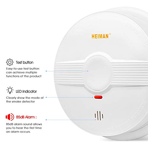 Heiman Rilevatore di fumo, rilevatore di incendio certificato TÜV e DIN EN 14604, con durata della batteria di 10 anni, rilevatore di fuoco con sensore fotoelettrico (set 633PHS-3)