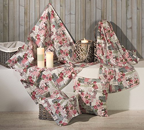 Heimtexland Shabby Chic - Federa per cuscino, 50 x 50 cm, 100% cotone, stile country francese con rose, varianti abbinate come set da tavolo, modello 293