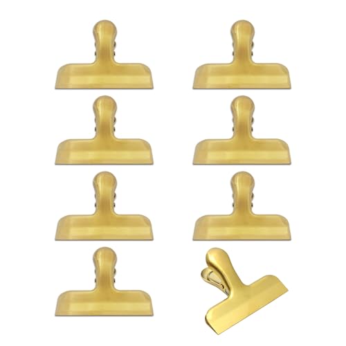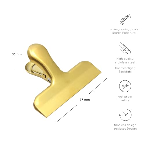 Heimzeit Design Clips Chiudi Sacchetti, buste per Alimenti e Documenti in Acciaio Inossidabile di alta Qualità, Oro [8 Pezzi, 77 x 20 x 30 mm] Morsetti Colorati, Forte Forza elastica