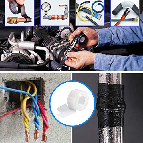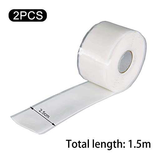 Heiqlay Nastro in Silicone, Autoagglomerante Silicone Tape nastro adesivo resistente allacqua per perdite dal tubo per fermare le perdite (2 pezzi, 0,5 mm x 25 mm x 1,5 m, bianco)