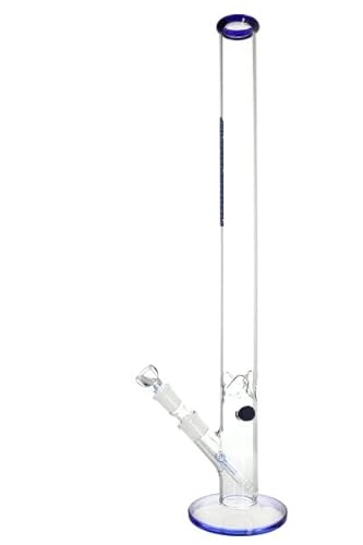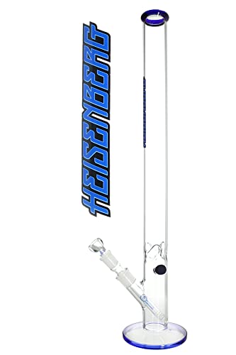 Heisenberg Long Slim Jim 3.0 Blue Line - Bong in vetro, altezza 60 cm, taglio normale (NS19) con foro per calci e scomparto per ghiaccio, senza percolatori