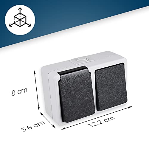 HEITECH Presa di corrente in superficie, combinazione di interruttore in superficie IP44 - Nuovo modello - Presa di corrente in superficie, commutatore AP per ambienti umidi 250V 16A