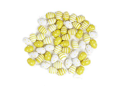 Decorazione pasquale: l'assortimento di 56 uova di Pasqua piccole e gialle e bianche con pois e strisce è la decorazione perfetta per Pasqua e primavera. Le uova sono perfette per creare un piccolo nido di Pasqua o appenderle ad un arbusto di Pasqua o ramo.