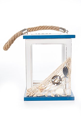Heitmann DECO Legno della Lanterna Maritim, Bianco/Blu, 14 x 14 x 19,5 cm