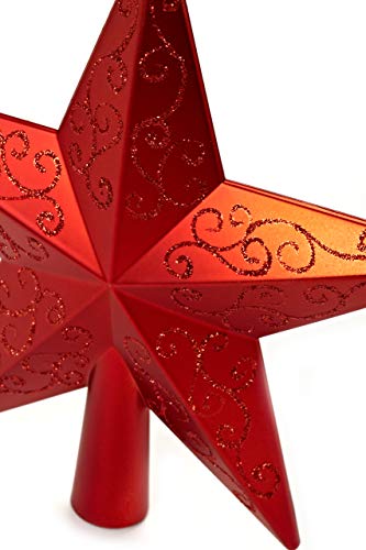 HEITMANN DECO Puntale per Albero di Natale in plastica: la Stella morde per Il Vostro Albero di Natale - Rosso con Decorazioni Glitterate