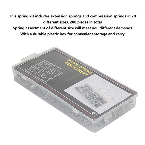 Questo kit comprende molla molle di trazione e molle di compressione in 20 diverse dimensioni, 200 pezzi in totale.