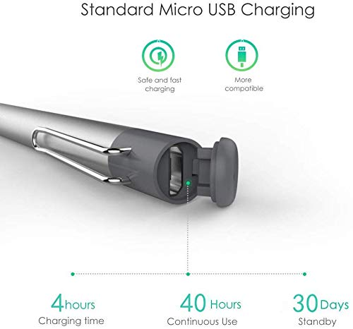 ✅FUNZIONE RISPARMIO ENERGIA: Solo con 4 ore di ricarica questa penna iPad, ricaricabile con alimentatore incorporato, supporta ben 40 ore di utilizzo continuo e 30 giorni in standby.