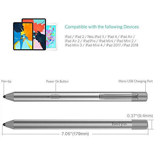 Heiyo Stylus Pen per Apple iPad, Tempo di Lavoro 40 Ore & Standby 30 Giorni Digitale Penna con 1,5 mm Precisione Nylon Punta, la Certificazione CE&RoHs Touch Penne per iPad PRO/Mini/Air (Sliver)