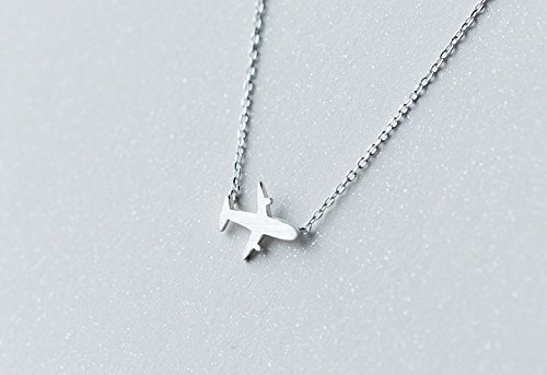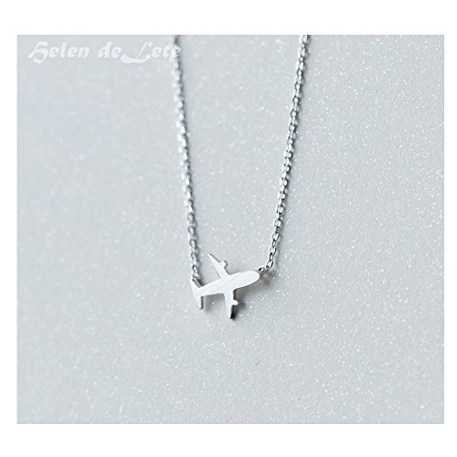 Helen de Lete - Originale collana a girocollo con ciondolo satinato a forma di piccolo aereo, in argento Sterling 925.