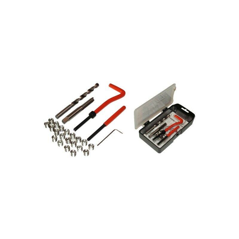 KIT SET HELICOIL RIPRISTINA RIPARAZIONE FILETTI ROVINATIM6 IL KIT COMPRENDE: -PUNTA PER PRE FORO 6,3mm -MASCHIO M6x1,0 -ATTREZZO INSERIMENTO HELICOIL -ATTREZZO ROMPI-LINGUETTA HELICOIL - 20 HELICOILMateriale: alta qualita'Qualità professionale WWW.NEO-TOOL.COM MADE IN POLONIA