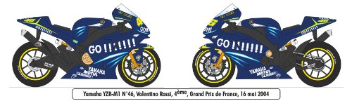 Descrizione del prodotto: Modellino in plastica da assemblare della moto YAMAHA YZR M1 2004 al 1/dodicesima. 73 pezzi. Dimensione modello montato = 174 x 60 mm