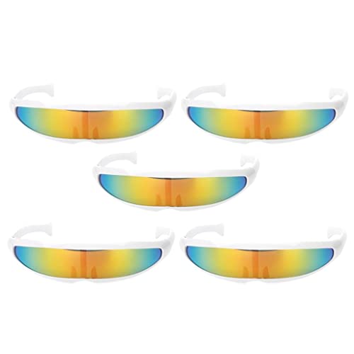 5 pezzi di occhiali da sole futuristici per ciclope, lenti arcobaleno e cornice bianca