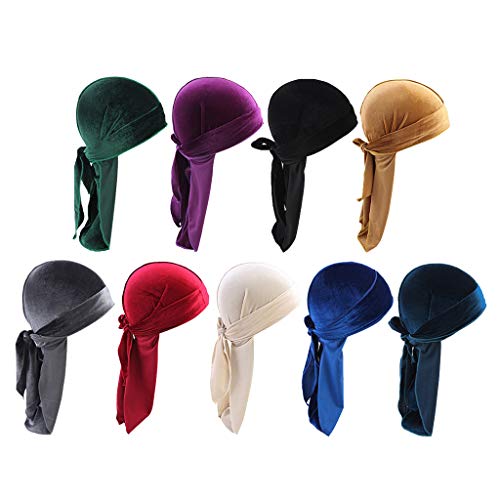 Hellery 9 Pezzi Uomini Lady Velvet Bandana Durag Cappelli Berretto Da Seta Pirata Cappello Per Tutti I Giorni Viaggio In Spiaggia, Multicolore
