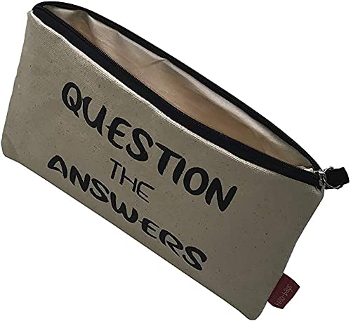 Hello-Bags. Necessaire/pochette. Esterno: 100% cotone. Con cerniera interna e fodera. Include una bella busta regalo kraft. Modello"QUESTION". Colore: Écru/Nero. Misure: 23 * 15,5 cm.