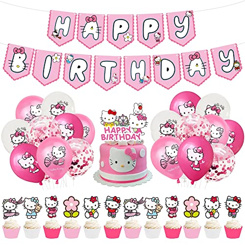 Hello K-itty Set di Decorazioni Per Feste, 30PCS Decorazione di palloncini per feste di compleanno, Banner Cake Toppers Kit di Decorazioni per Feste di Compleanno di Palloncino
