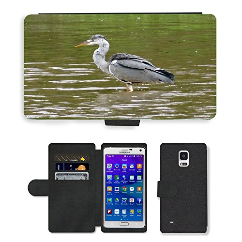 Hello-mobile PU Flip Carcasa Funda de Cuero Piel Cubre Case // M00136800 Airone cenerino Ardea cinerea Heron // Samsung Galaxy Note 4 IV