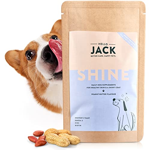 Hello Jack Shine - Integratori per Cani - Integratore Quotidiano- Bocconcini per Cuccioli per un Pelo Lucido, una Pelle Sana e la Salute delle Cellule - Gusto al Burro di Arachidi