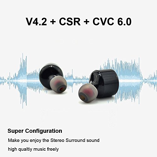 Hellodigi HD10 4.2 wireless Bluetooth Headset mini Twins invisibile auricolari Truly v4.2 wireless Bluetooth auricolare stereo Surround Sound con microfono per Android, iOS
