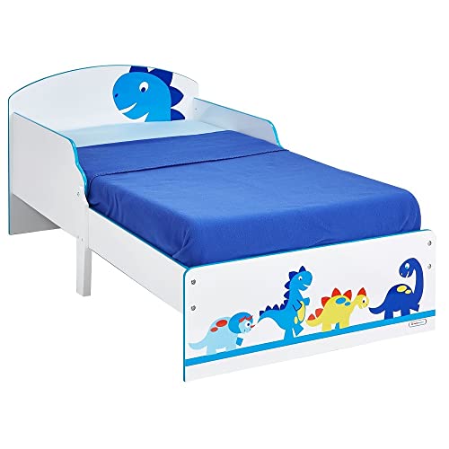 HelloHome 454DIE, Lettino per Bambini con Dinosauro, MDF, Bianco/Blu, 142x77x59 cm
