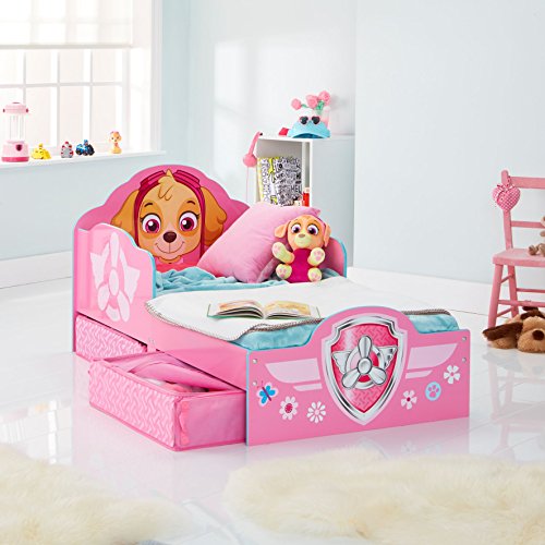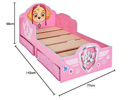 HelloHome 509SKE La Squadra dei Cuccioli Lettino per Bambini con Contenitore Sottoletto, Legno, Pink, 142 x 77 x 68 cm