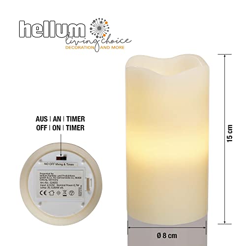 Hellum Candela a LED con timer, Ø 8 cm x 15 cm di altezza, proiettore a LED con cielo stellato, candele con batterie (3 batterie AAA non incluse), decorazione a LED, in vera cera LED 524055