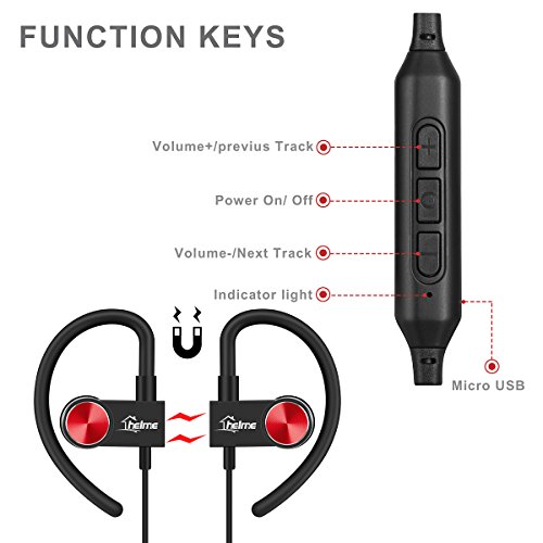Helme, cuffie bluetooth CSR 8635 senza fili per corsa e sport, auricolari interni con microfono per iPhone e Samsung, a cancellazione di rumore, suono stereo HD, lasciano libere le mani, impermeabili IPX5, a prova di sudore
