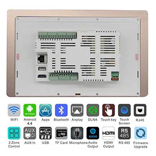 HELMER Amplificatore Bluetooth a Parete con WiFi, Sistema Audio Stereo Multi-Room Android con Video Player Touch Screen HD da 10,1", Nero, U10