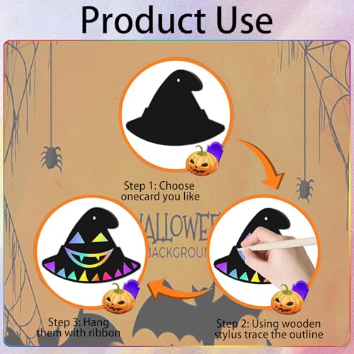 HELOVGE 48 Pezzi Scratch Art Halloween Carta,Halloween Scratch Art Craft Kit,Carta Graffiata Colorata di Halloween,Gratta e Vinci Di Halloween Kit, per Regalo di Halloween Decorazioni Fai.