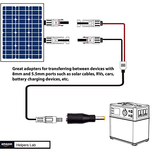 Helpers lab DC7909 Femmina da 8 mm a maschio da 5,5 mm Alimentazione DC Connettore adattatore jack per Jackery Explorer Rockpal Bluetti Milin IBM Lenovo ThinkPad