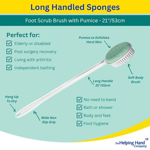 The Helping Hand Company - Spazzola per scrub per piedi con pietra pomice, per bagno e doccia, per rimuovere la pelle dura e massaggiare i piedi, manico pieghevole, 53 cm