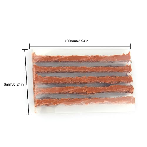 Dimensioni: La striscia di riparazione dei pneumatici è lunga 100 mm e spessa 6 mm La confezione comprende un totale di 12 pacchi di strisce di riparazione dei pneumatici, per un totale di 60 strisce di riparazione dei pneumatici, che è molto economica e pratica. Con questo tipo di striscia di gomma per pneumatici, è facile da installare ed è possibile riparare i pneumatici da soli senza trovare un'officina, che è economica e fa risparmiare tempo.
