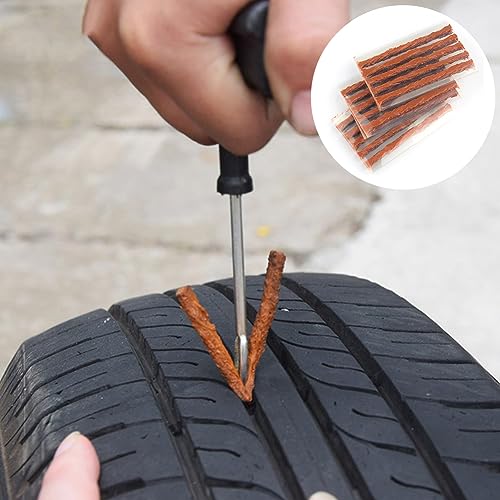 Facile da usare: Se il pneumatico è danneggiato, utilizzare semplicemente la striscia di riparazione del pneumatico per "bloccare" il foro o lo spazio nel pneumatico. Inserire alla profondità corretta e tagliare le strisce di patch extra.