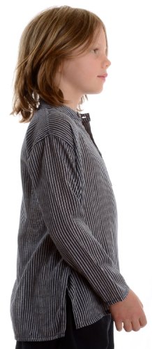 HEMAD Camicia del Pescatore per Bambini a Righe - Blu M - Kurtha di Nepal in Cotone