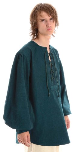 HEMAD Camicia in Cotone Medievale da Uomo - Senza Colletto & Anteriore Allacciatura - M Verde Scuro