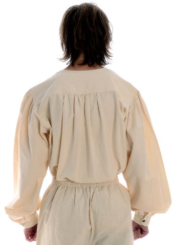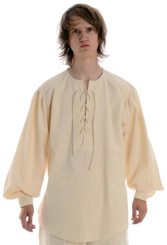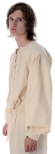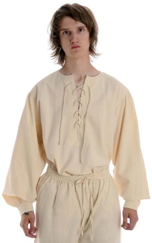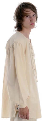 Hemad.de - Camicia Medievale Beige con Allacciatura in Puro Cotone, Beige, 3XL