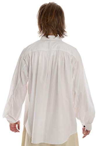 HEMAD Camicia Medievale da Uomo Pirata - Collo Alto, Pizzo Frontale, Cotone Leggero - L Bianco