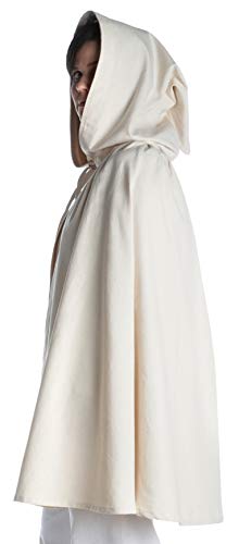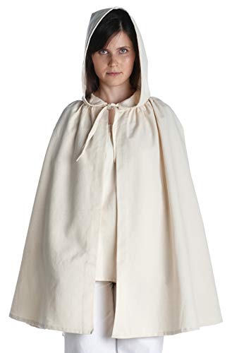 HEMAD Mantello Medievale da Donna con Cappuccio - Corto - in Puro Cotone - Effetto Lino - Beige