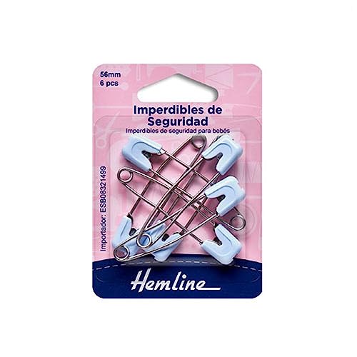 Hemline - Spille di Sicurezza a Pressione per Pannolini Bambino Chiusura di Sicurezza Testa 56 mm Tutti i Colori Blue