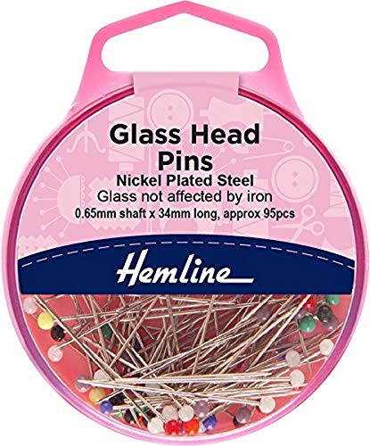 Hemline - Spilli a testa vetro 10 G, 34 mm di lunghezza e 0,65 mm di spessore