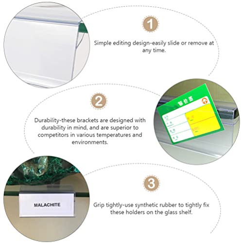 Hemobllo Porta etichette in plastica trasparente, portaetichette per vassoio in vetro con inserti per etichette di prezzo, per vendita al dettaglio, cestino per panel con clip su supporto per