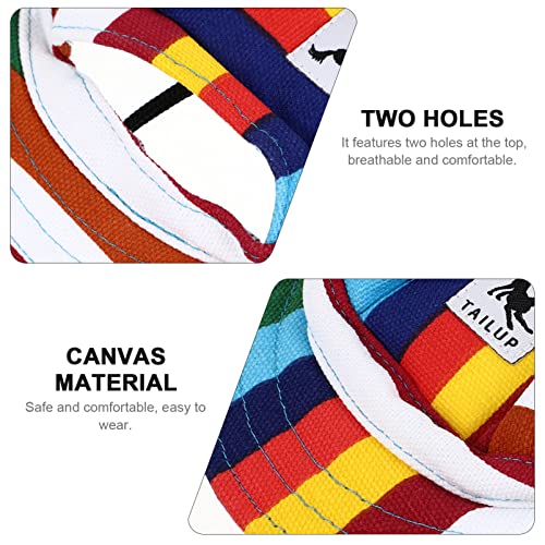 Hemobllo Cane Round Pet Cap Fashion Stripe Pet Dog Sun Cap with Ear Holes And Adjustable Chin Strap Summer Dog Baseball Cap for Small Medium Dogs (Colorful Stripe) Caschetto Cane