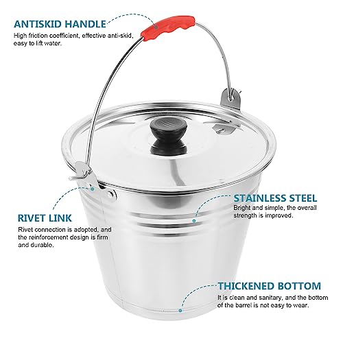 HEMOTON Secchio in Metallo con Coperchio Secchio di Secchio di Latte in Acciaio Inox con Coperchio+ Maniglia Secchio Resistente per Carichi Pesanti Compost Secchio di Latte