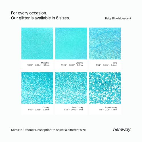 Hemway Premium Ultra Sparkle Glitter Multi Purpose Metallic Flake for Arts Crafts Nails Cosmetics Resin Festival Face - Baby Blue Iridescent - Extra Chunky (1/24" 0.040" 1mm) 10g / 0.35oz SAMPLE