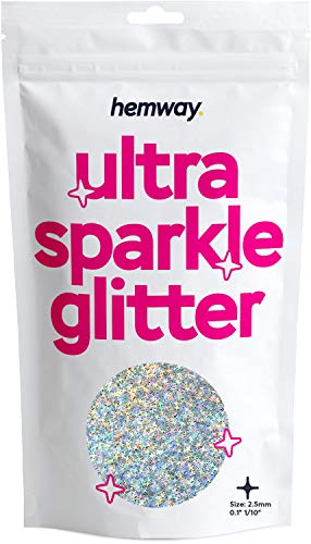 Hemway Ultra Sparkle Glitter - 1/10" 0,1" 2,5 millimetri - a quattro lati a forma di stella di scintillio di festa per la decorazione, i bambini Scrapbook, Arte, Craft- argento olografico - 50g