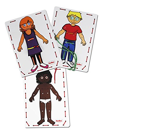 Tre grandi carte di plastica con i bambini da vestire con 13 vestiti (top e fondo) per vestire i bambini con semplici punti di cordino