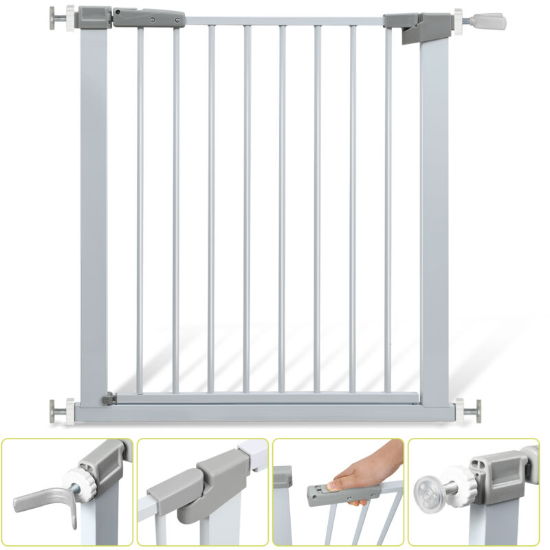 Descrizione del prodotto: CANCELLETTO PER SCALE SENZA FORARE: Ideale come cancelletto di sicurezza per bambini e animali domestici. Cancelletto per bambini adatto a larghezze da 76 a 83 cm. Altezza: circa 78 cm. Con il perno a Y è utilizzabile su ringhiere di scale con montanti rotondi. APERTURA UNILATERALE E BILATERALE: Per facilitare l'uso, il cancelletto si chiude automaticamente quando l'angolo di apertura è inferiore a 90°. Con un angolo di apertura di 90°, il cancelletto rimane aperto. MONTAGGIO VELOCE E SEMPLICE: Grazie ai 4 punti di bloccaggio, l'installazione nel telaio della porta o tra le pareti è veloce e semplice. Il cancelletto di sicurezza per scale è realizzato in tubo d'acciaio di alta qualità, robusto e stabile. Attenzione: non rimuovere la clip prima che il cancelletto di sicurezza per porta sia completamente installato. SICUREZZA: Il perno di sicurezza nella parte inferiore offre una doppia protezione, in modo che i bambini non possano aprire accidentalmente la