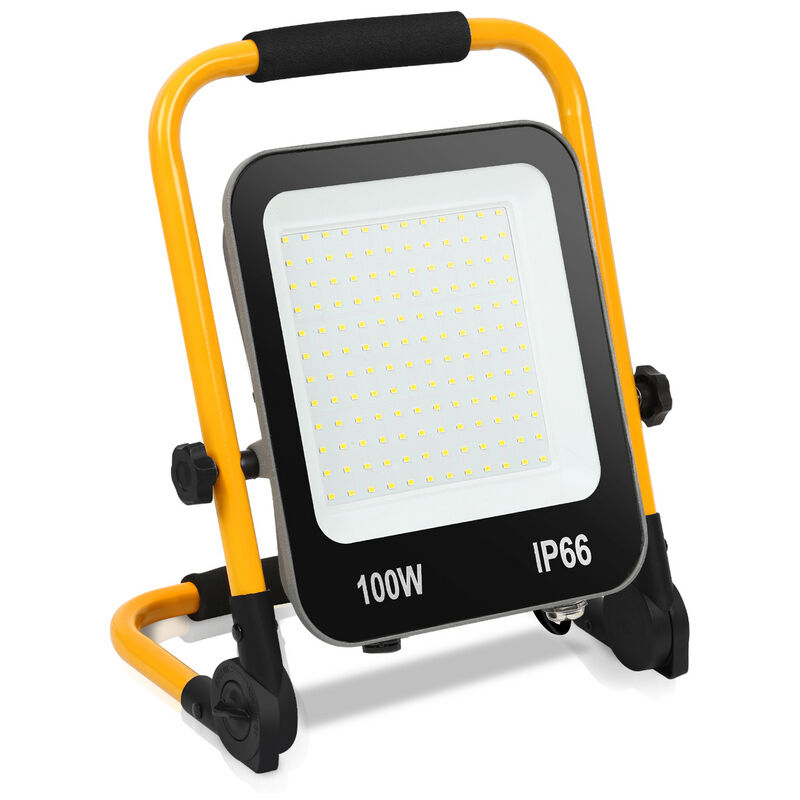 Foco de obra LED Luces de trabajo de seguridad garantizada para interiores y exteriores El amplio ángulo de haz de 120° ilumina bien el lugar de trabajo. Y eso también en exteriores, porque el proyector está incluso protegido contra chorros de agua con un grado de protección IP66 e ilumina el entorno sin impresionarse incluso con lluvia y tormentas. Esto lo convierte en el compañero ideal para acampar, como ayudante en reparaciones de vehículos o en situaciones de emergencia (asistencia en accidentes, salvamento). El efecto de iluminación del foco de construcción LED es muy bueno y la luz es muy suave, lo cual es muy adecuado para la decoración de iluminación local y exterior. Además, el reflector LED también es una luz que ahorra mucha energía. Ideal para vallas publicitarias, estadios, edificios, calles, plazas, fábricas, etc. Especificaciones técnicas: ;